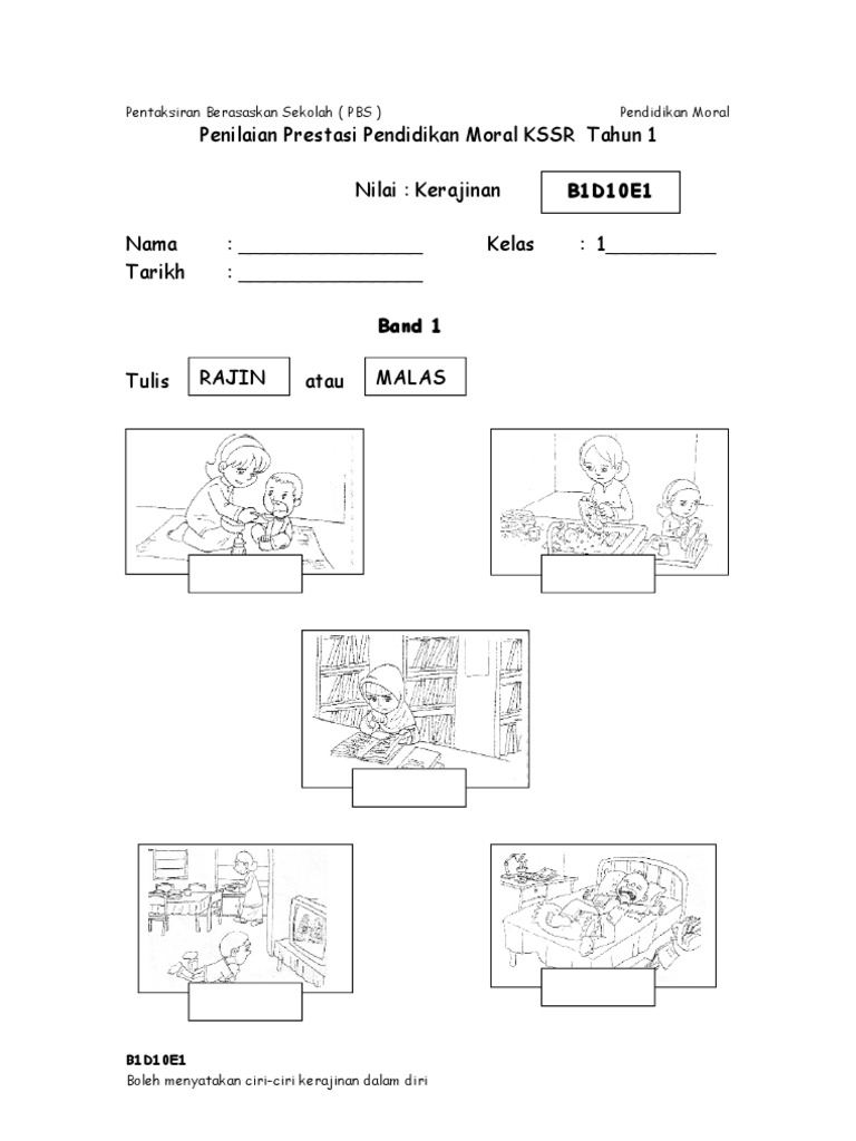 Evidens Pbs Pendidikan Moral Tahun 1 Nilai Kerajinan Band 1 6 Pdf